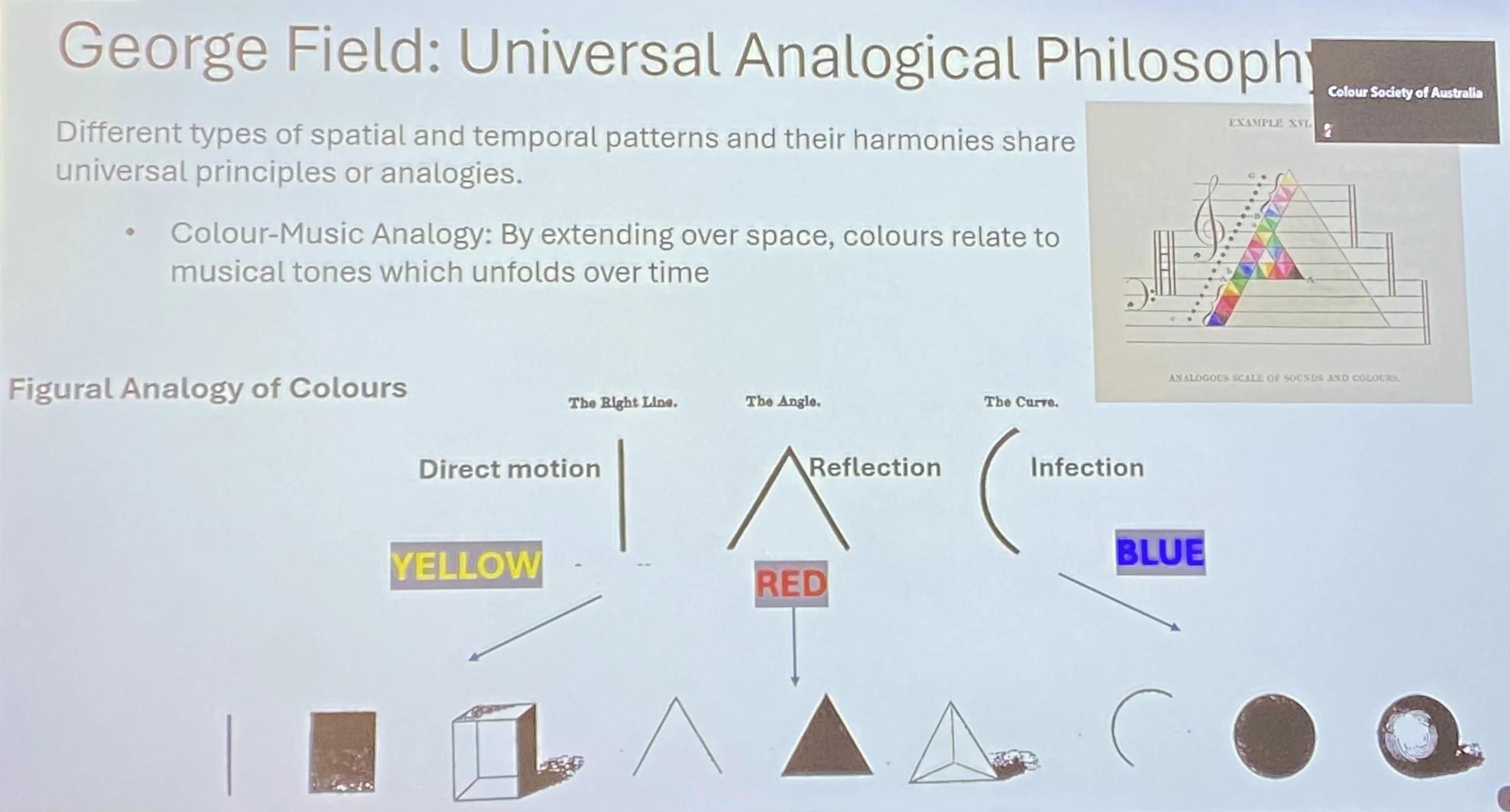 This is a photo I took of Braka Spehar’s screen based presentation at the Colour Society of Australia’s national conference. It refers to the work in cross-modal colour done by George Field (1817-1844).